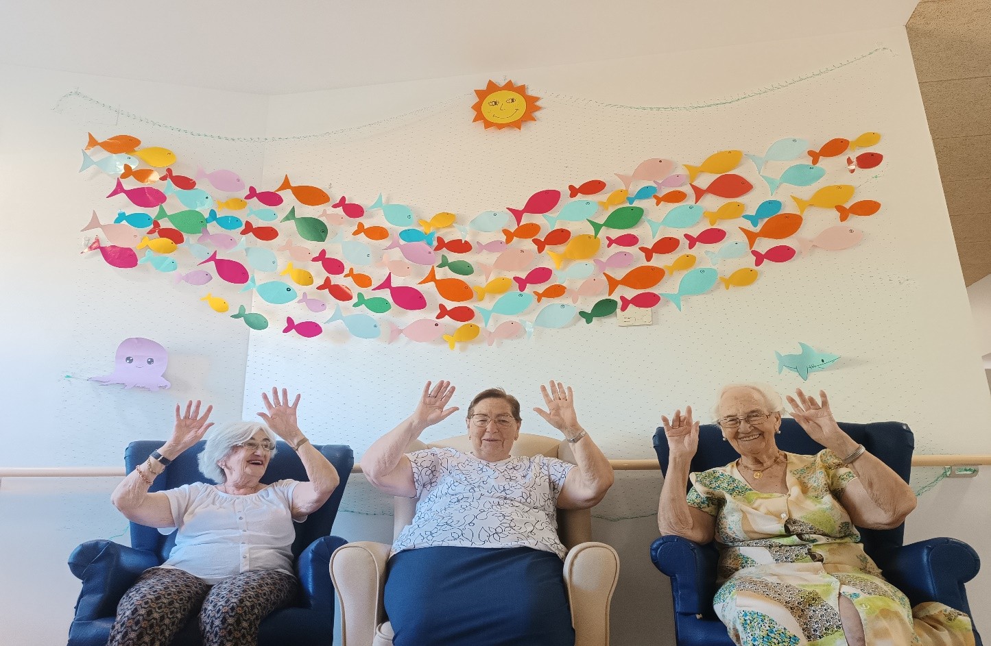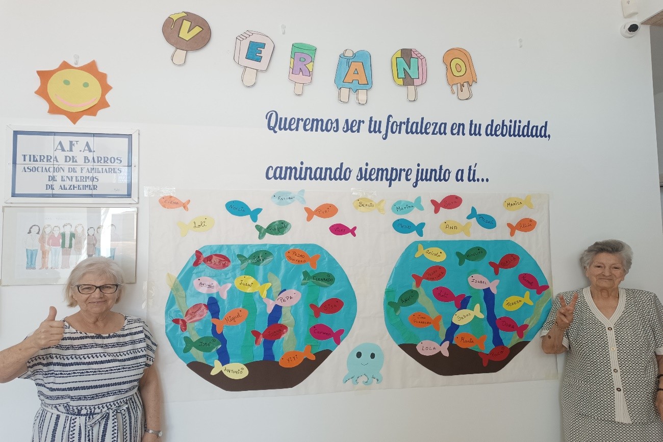 En nuestro centro calentamos motores semanas antes para preparar nuestra decoración dedicada al verano. Para ello, hacemos participes a todos nuestros usuarios y usuarias realizando una manualidad. Esta actividad se denomina LABORTERAPIA, con la cuál trabajamos las habilidades manuales, la psicomotricidad fina, la memoria de trabajo, la atención y concentración para realizar la manualidad… Sin olvidarnos que con esta actividad trabajamos la autonomía y autoestima de cada paciente, haciéndole partícipe de una actividad en común con sus compañeros donde pueden charlar amenamente, expresar sus gustos, contar anécdotas y vivencias relacionadas en este caso con el verano… Y a la vez, ellos/as se sienten realizados cuando ven que su labor ha servido para decorar sus aulas y pasillos, haciendo de su lugar de trabajo un sitio más bonito y divertido.
